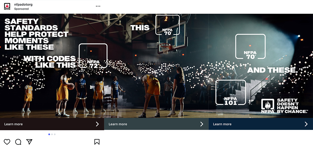 The NFPA wanted to make the public aware that a non-government entity is still fighting for better safety by showcasing how safety codes surround and protect us. The launch campaign included an anthem film, unique paid and organic social, a completely new brand visual identity, a landing page, and a social brand activation.